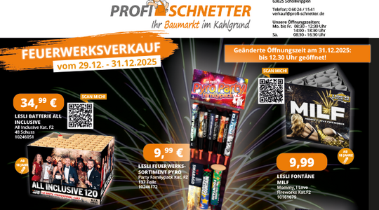 Feuerwerksverkauf vom 29.12. - 31.12.2025