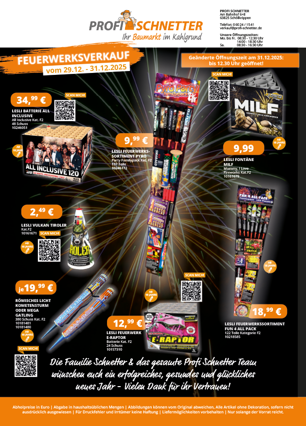 Feuerwerksverkauf vom 29.12. - 31.12.2025